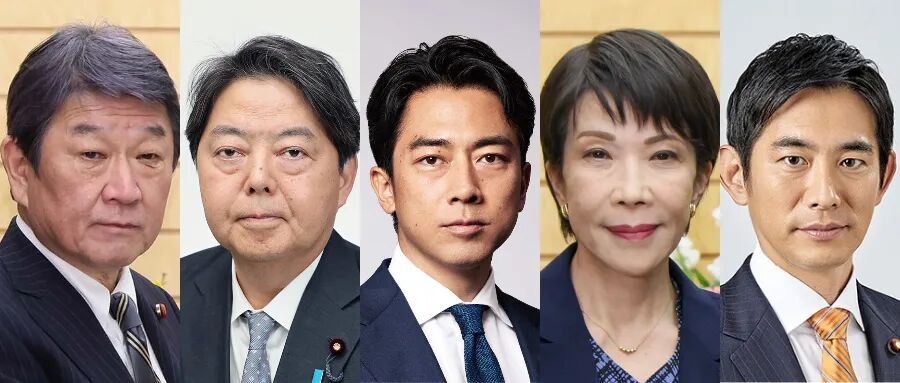 拼版照片:从左至右依次为茂木敏充、林芳正、小泉进次郎、高市早苗、小林鹰之。图片来自网络