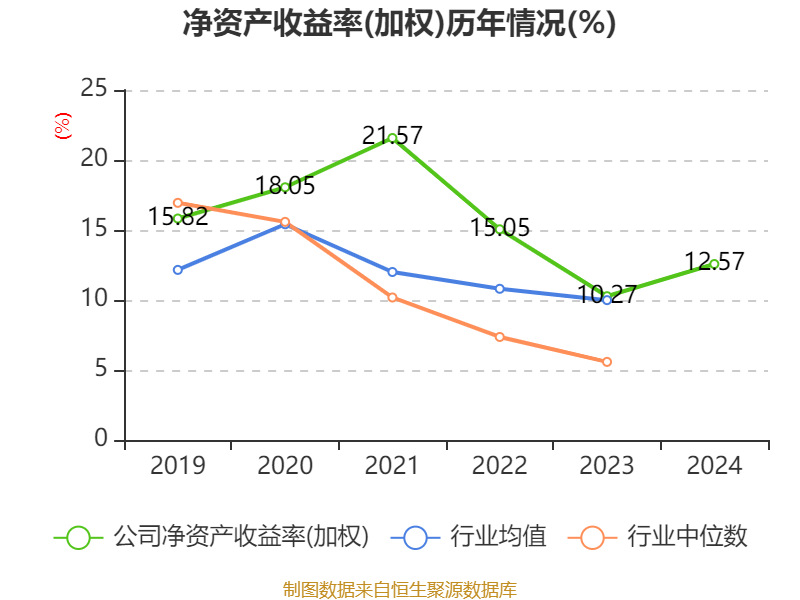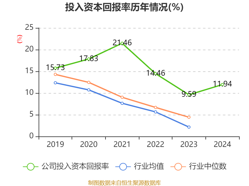 数据显示聚盈策略,2024年公司加权平均净资产收益率为12.57%,较上年同期上升2.3个百分点。公司2024年投入资本回报率为11.94%,较上年同期上升2.35个百分点。