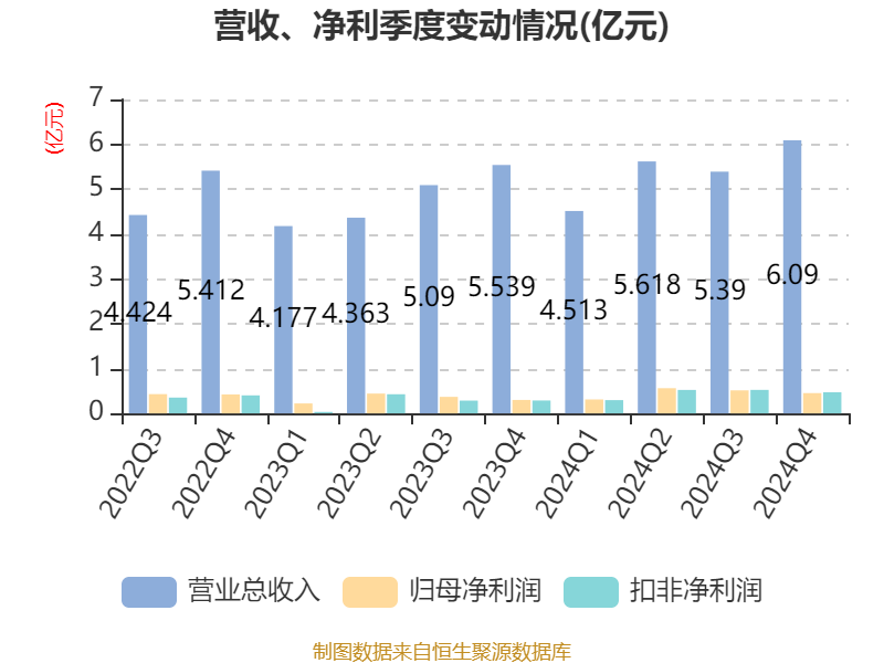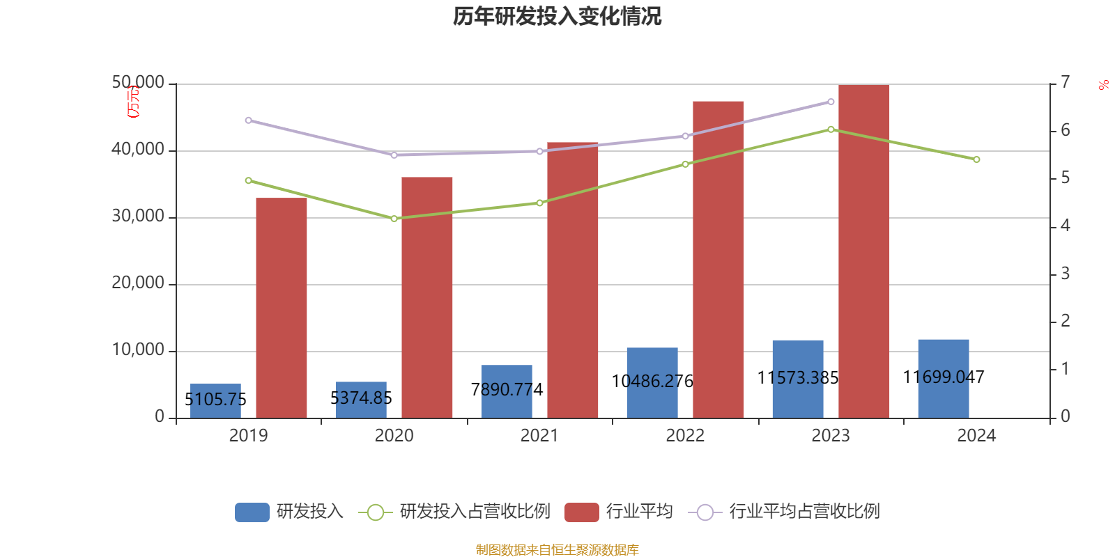 2024年全年,公司研发投入金额为1.17亿元,同比增长1.09%;研发投入占营业收入比例为5.41%,相比上年同期下降0.63个百分点。此外聚盈策略,公司全年研发投入资本化率为0%。