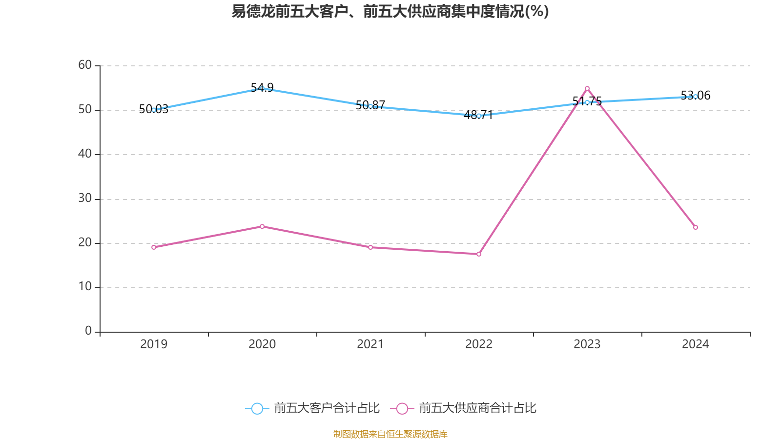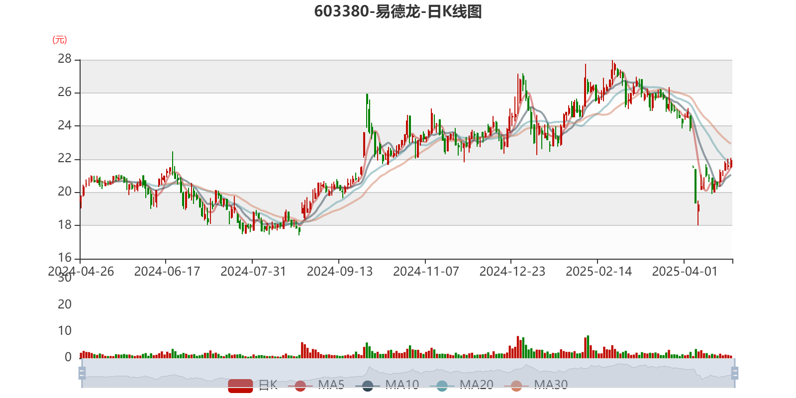 以4月25日收盘价计算,易德龙目前市盈率(TTM)约为19.09倍,市净率(LF)约2.33倍,市销率(TTM)约1.63倍。