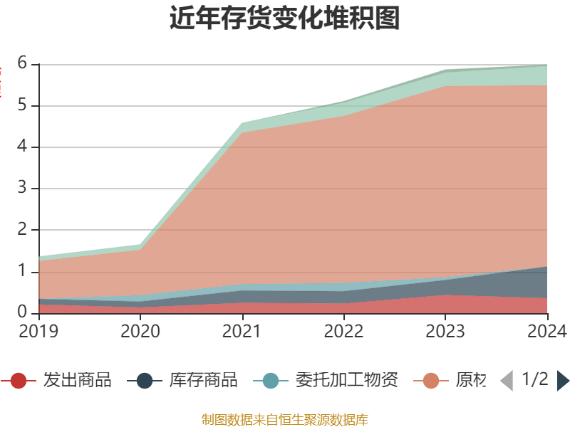 从存货变动来看,截至2024年末,公司存货账面价值为5.98亿元,占净资产的39.74%,较上年末增加1147.51万元。其中,存货跌价准备为6551.19万元,计提比例为9.87%。