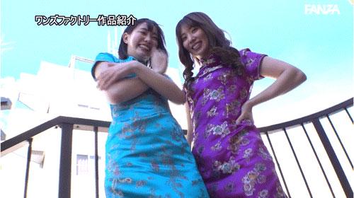 所以引退前的美谷朱音,和好朋友山岸あや花(山岸绮花),一起演出也是OK的:两位女优会换上四种不同的服装,在大马路上随机拉人到摄影棚。只要在时间内,你没有被她们搞定,那就和这两位等级很高的女优继续。而且因为这次是共演,所以不只有两人的演出,从剧照和影片也可以看到,有二打二的团战: