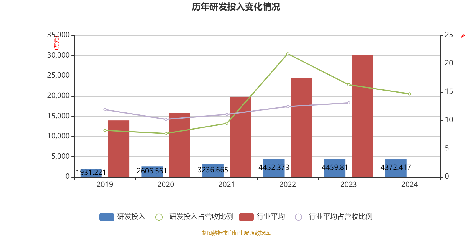 2024年全年,公司研发投入金额为4372.42万元,同比下降1.96%;研发投入占营业收入比例为14.67%,相比上年同期下降1.62个百分点。