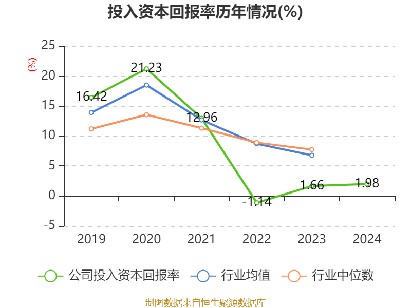 数据显示,2024年公司加权平均净资产收益率为2.05%,较上年同期上升0.24个百分点。公司2024年投入资本回报率为1.98%,较上年同期上升0.32个百分点。