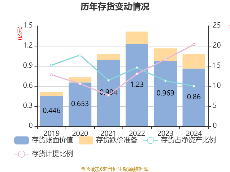 从存货变动来看,截至2024年末,公司存货账面价值为8596.65万元,占净资产的9.97%诚信优配,较上年末减少1095.92万元。其中,存货跌价准备为2192.97万元,计提比例为20.32%。