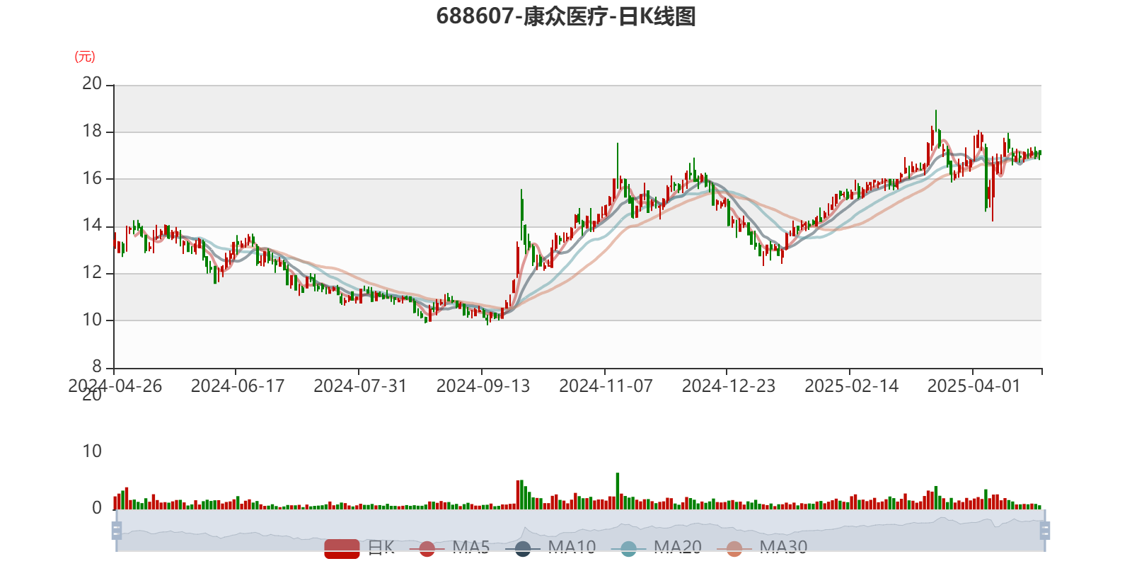 以4月25日收盘价计算,康众医疗目前市盈率(TTM)约为85.12倍,市净率(LF)约1.74倍,市销率(TTM)约5.04倍。