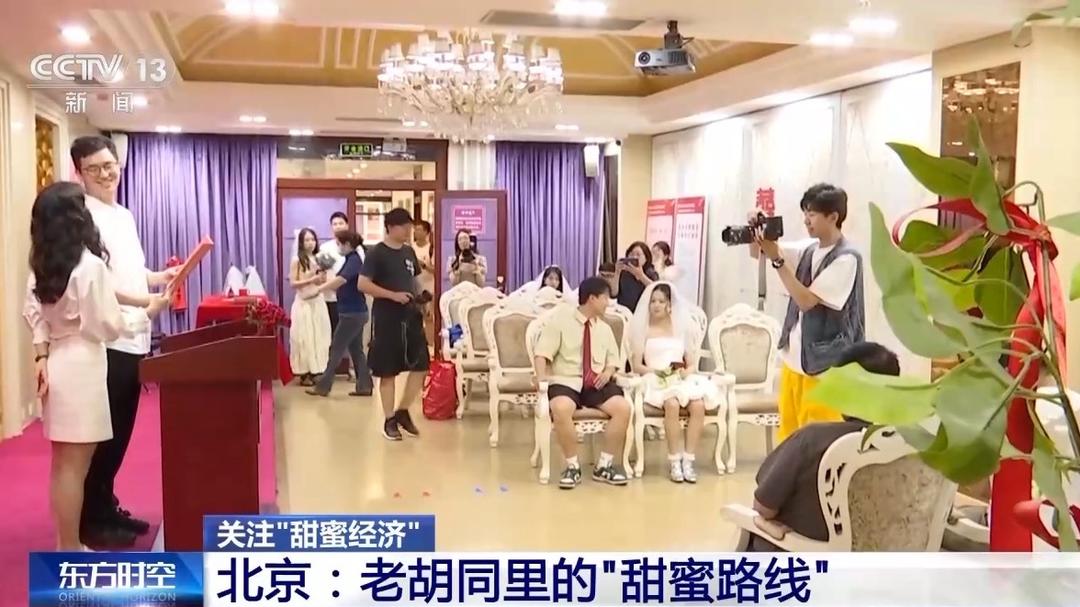 瞄准“甜蜜经济”的新需求,这些老字号企业也开始转型。婚姻登记点推出了由多家老字号的产品组合成的甜蜜六件套。