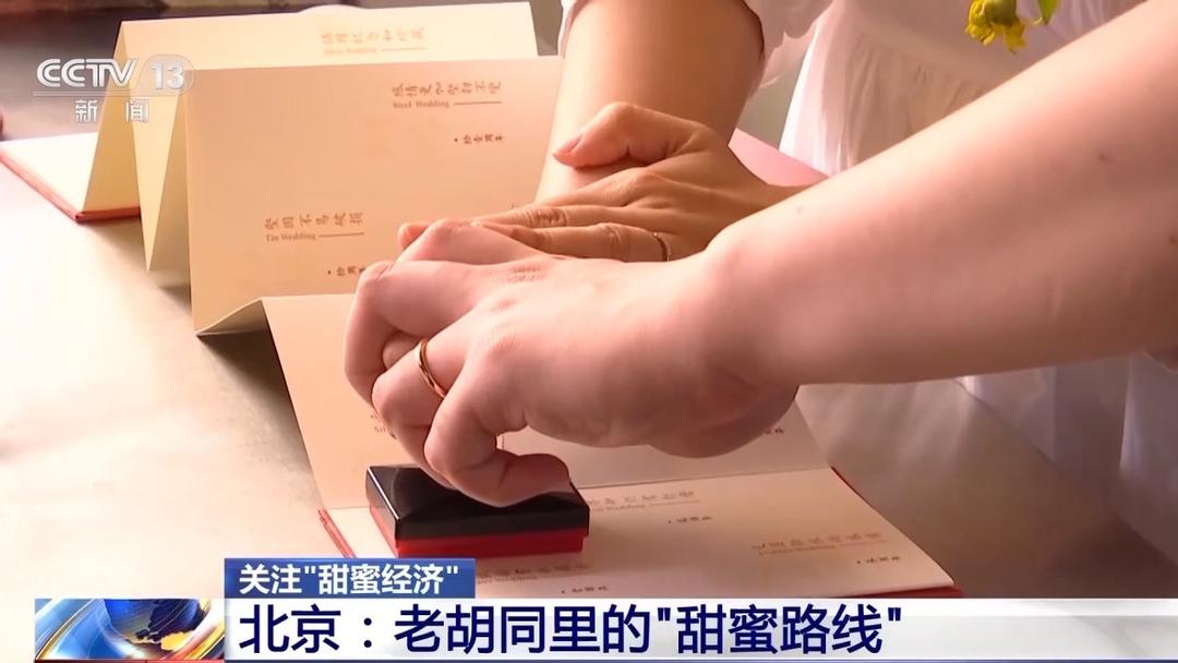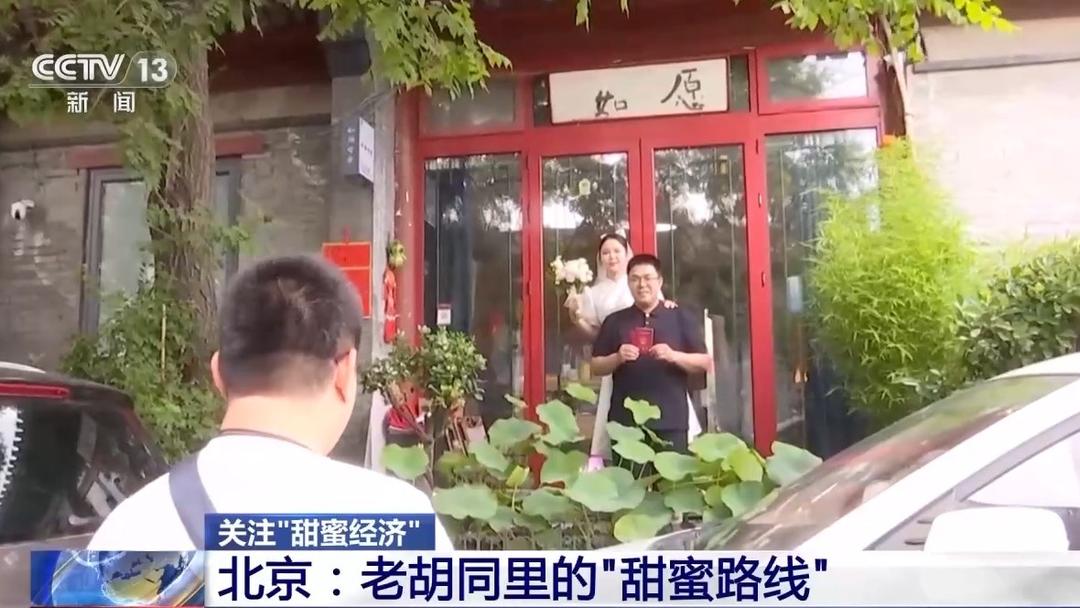领完结婚证,很多新人都会沿着这条胡同拍照,由于拍照打卡的景点都集中在这一公里左右,这条路线也就成了名副其实的“甜蜜路线”。“甜蜜路线”上的不少商家也都开始转型婚恋主题业务。