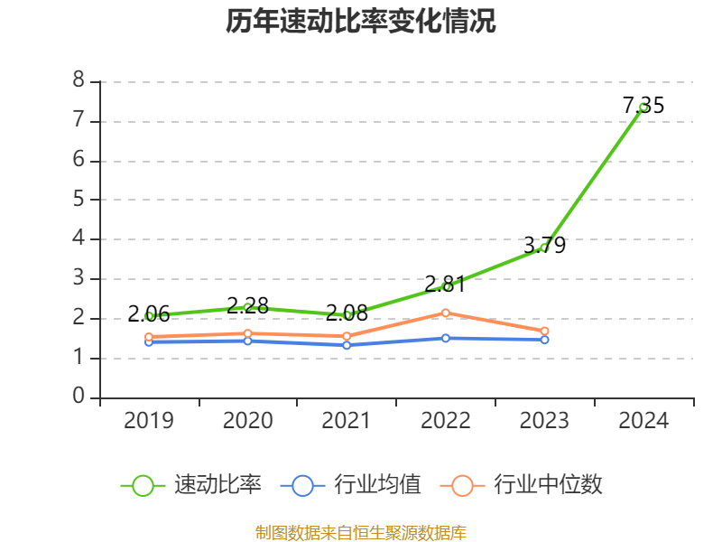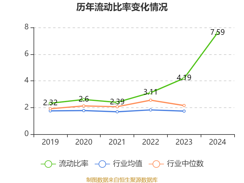 2024年,公司流动比率为7.59,速动比率为7.35。