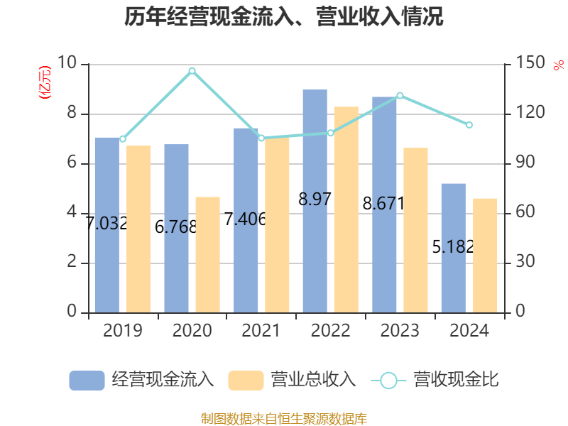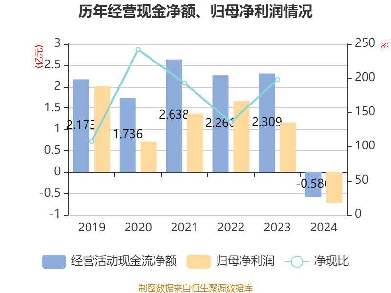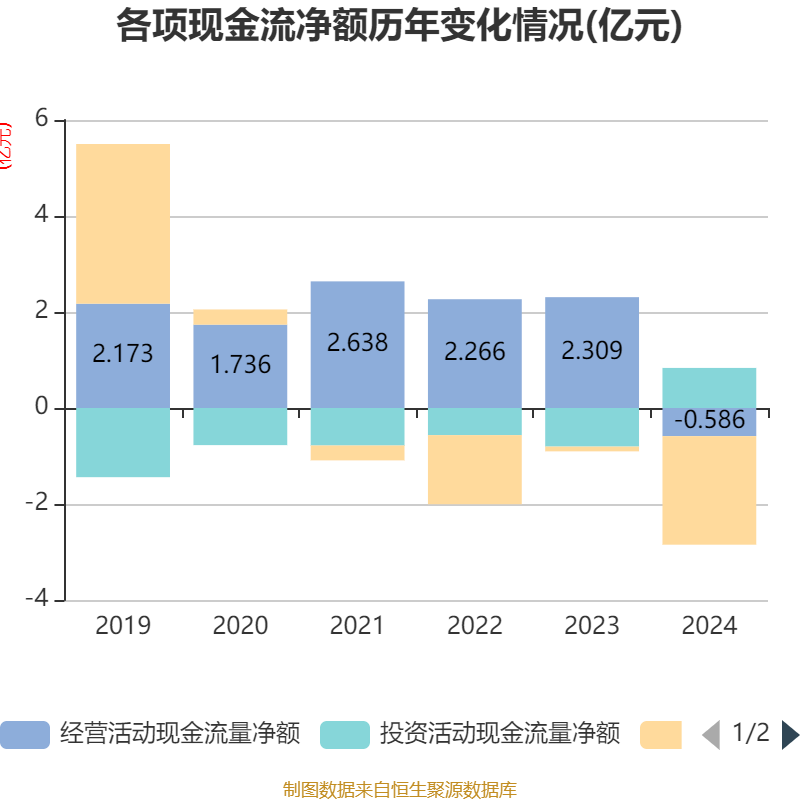 截至2024年股天下,公司经营活动现金流净额为-5856.83万元,同比减少2.9亿元;筹资活动现金流净额-2.26亿元,同比减少2.16亿元;投资活动现金流净额8350万元,上年同期为-8038.24万元。