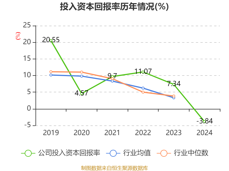 数据显示,2024年公司加权平均净资产收益率为-5.26%,较上年同期下降13.13个百分点。公司2024年投入资本回报率为-3.84%,较上年同期下降11.18个百分点。