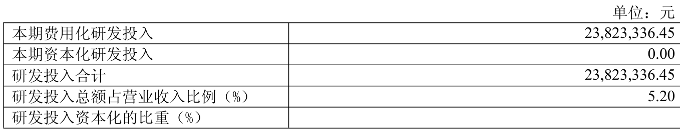 2024年全年,公司研发投入金额为2382.33万元,同比下降32.37%;研发投入占营业收入比例为5.2%,相比上年同期下降0.12个百分点。此外,公司全年研发投入资本化率为0%。