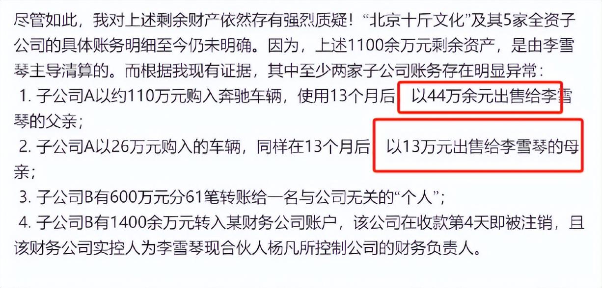 比如公司买的车,用了才一年多,就以极低的价格转手卖掉,而那台被李雪琴写进段子里的奔驰车,也成了这场纠纷里一个扎眼的符号,从昔日友情的见证,变成了如今反目的物证....