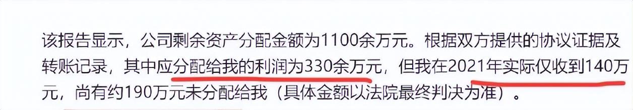 他的指控刀刀见血:自己作为合伙人,被李雪琴“过河拆桥”,承诺的330万分红,只给了140万,还欠着190万,更严重的是,他指控对方在清算公司时财务不明,自己被蒙在鼓里。